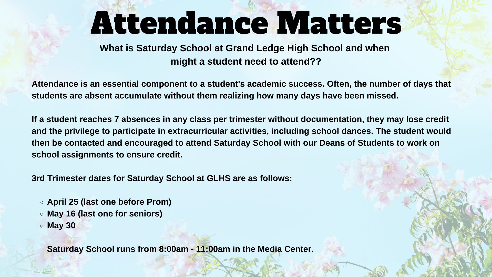 Saturday School Dates for 3rd Trimester