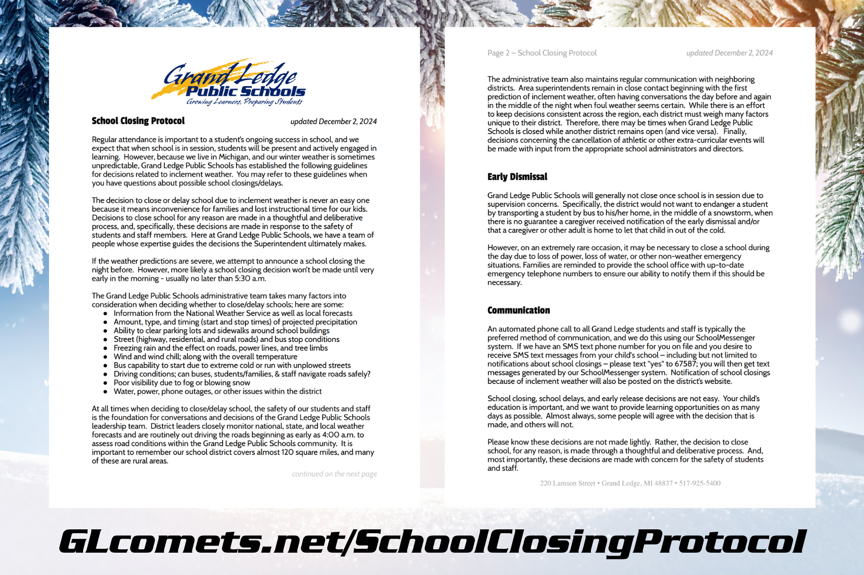 Please visit GLcomets.net/Upcoming to review what the school district shares in newsletters regarding upcoming events, information, and news.
